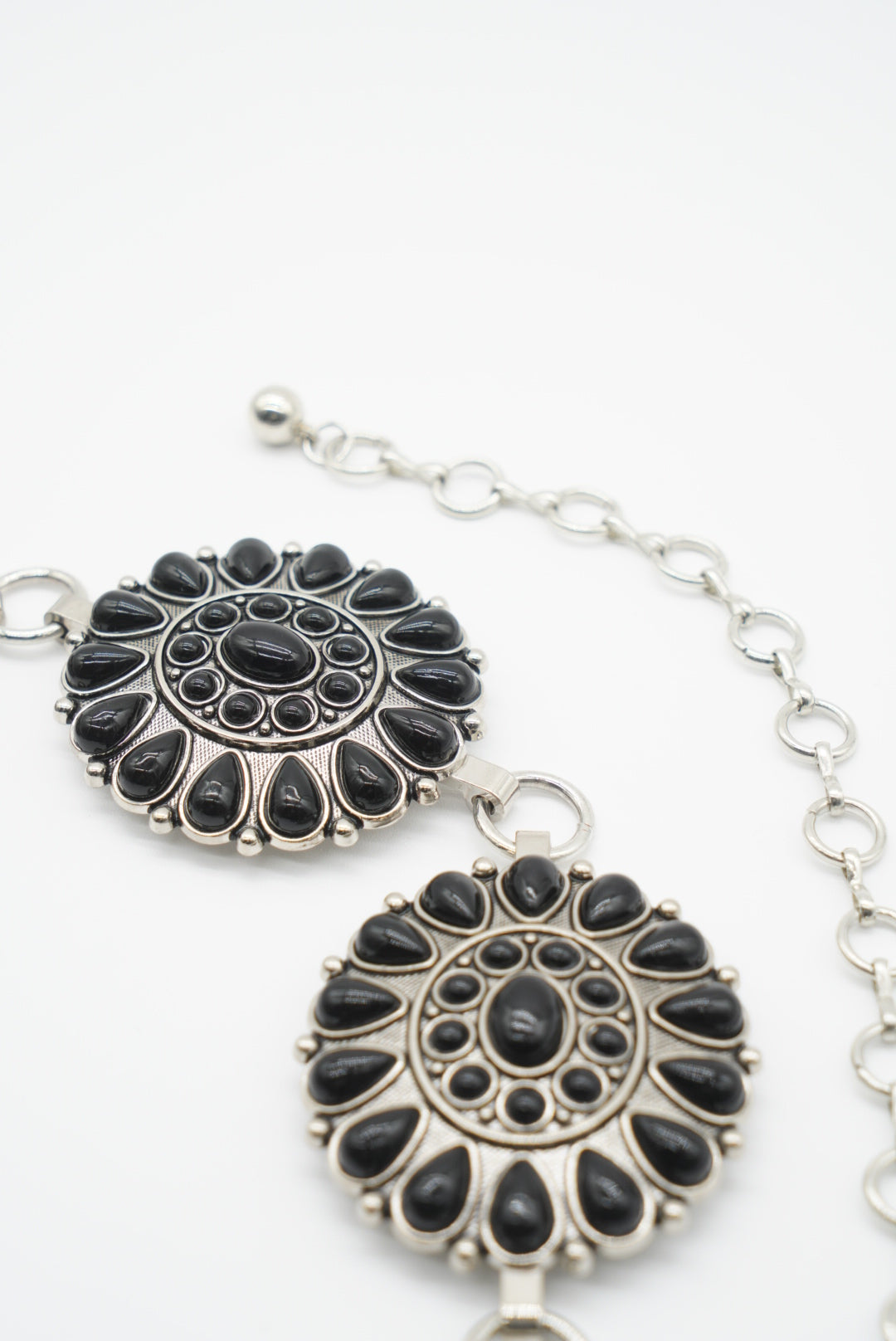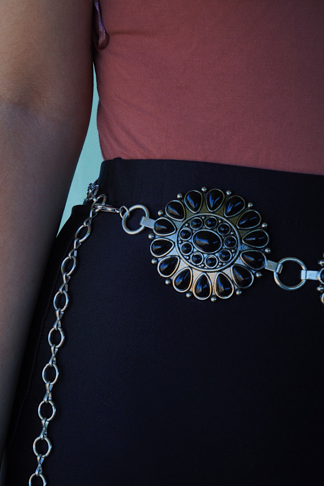 Details: Silver Belt with Black Simulated Stone